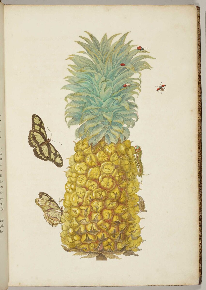 В 1699 году Мария Сибилла Мериан со своей младшей дочерью отправилась в Суринам на север Южной Америки для изучения местной флоры и фауны. Созданные за это время иллюстрации были опубликованы в Амстердаме в 1705 году за счет самой Мериан. Этот том был приобретен для недавно созданной Королевской библиотеки во время правления короля Вильгельма IV. Это страница из редкого издания Мериан Metamorphosis Insectorum Surinamensium с сопроводительным текстом на латинском языке. Иллюстрации были расписаны Мериан и ее дочерями с особой точностью, чтобы воспроизвести цвета изображенных насекомых. Мериан посвятила свое издание "всем любителям и исследователям природы". Сам том был выдан в полном кожаном переплете с коричневым теленком, богато тиснённым золотом. Подписывайтесь, чтобы узнавать больше о искусстве нашей планеты.🌎