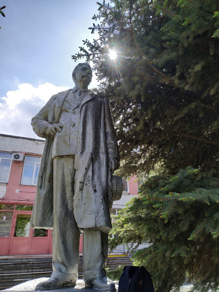 Во дворе одной из школ Ленинского района стоит памятник Максиму Горькому. Почему? Никакой подоплёки нет. Стояла скульптура в каком-то дворе, какой-то человек притащил ее к школе (как?), и Горького воздвигли на постамент и определили под ответственность учебного заведения. Так и стоит там полвека, задумчиво глядя на нынешних школьников.