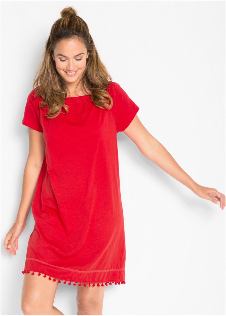 Если в летнем кафе или на прогулке у моря вам захочется большей романтики, просто приспустите резинку горловины, и ваше платье превратится в модный вариант с открытыми плечами.