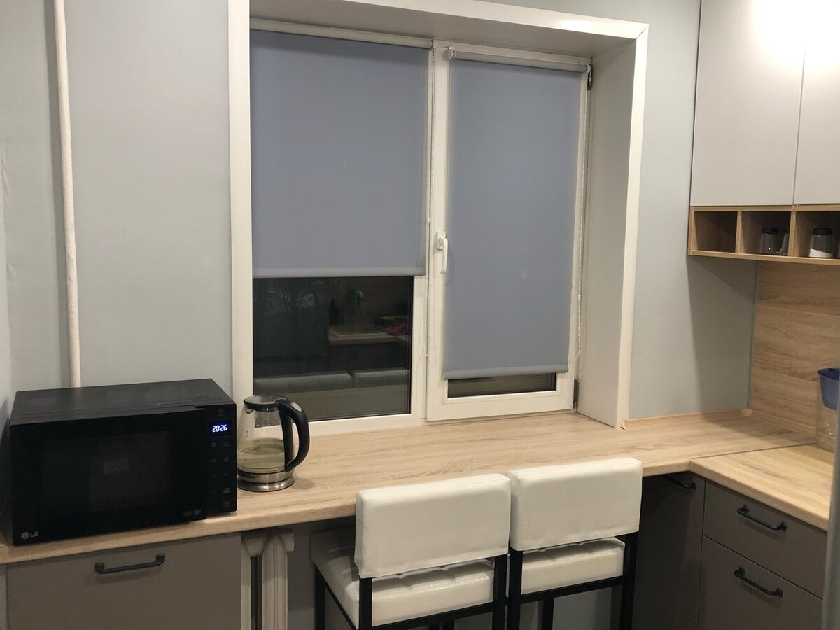 Нужна ваша помощь, дорогие читатели! Нашли две похожие кухни, и не можем выбрать, какая из них красивей и удобней. Смотрите, выбирайте и пишите ваш вариант в комментариях! А если задумались о том, чтобы обновить мебель, загляните на наш сайт: для кухни там найдётся всё необходимое. 1. Наташ, вставай, мы всё впихнули. Вообще всё, Наташ! Здесь даже 6 квадратных метров нет — обычная хрущёвская крошка, в которой хозяева использовали каждый сантиметр свободного пространства по-максимуму. Стол на подоконнике, микроволновка там же, под ней — дополнительная тумба для хранения. Награду за впихивание невпихуемового владельцы получить вполне могут — но удобно ли обедать за таким импровизированным столом, если два стула без людей кое-как помещаются? И задевать локтями чайник ещё… Расстояние от мойки до газовой варочной панели недостаточное, но в маленьких кухнях по-другому сделать сложно. А вот вытяжку подняли на требуемые 75-80 см, молодцы! Сочетание белых фасадов и открытых полок в том же де