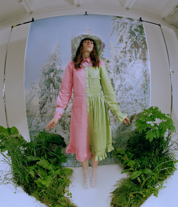 Работы Ромы Уварова объединяют два качества — театральность и наивность в самом светлом значении этого слова. В коллекции сезона осень-зима 2020 есть очаровательные ситцевые платья, вязаные жилетки, брюки леденцовых расцветок — все эти вещи напоминают о детстве. В прошлое также переносят платья в горох, комплекты из вареной джинсы и съемные кружевные воротнички. Сумки в виде животных сделаны из советских плюшевых игрушек, которые Роман находил на блошиных рынках. Старые жемчужные бусы заменили ремешки сумок. Также команда бренда использовала фарфоровых собачек, купленных у бывшей сотрудницы фарфорового завода, — из них выполнены серьги, бусы и браслеты. Читайте больше на BURO.