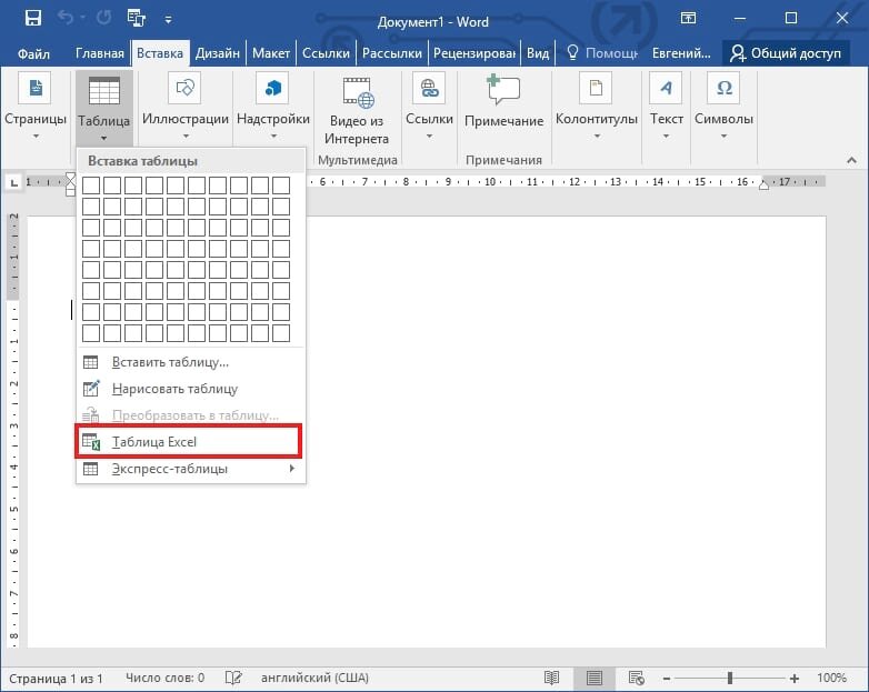 Текстовый процессор с некоторыми базовыми возможностями электронных таблиц делает фантастическую комбинацию. Вы можете довольно просто встроить в обычный текстовый документ Microsoft Word таблицы Excel. Внедрение Excel таблиц в основном включает крошечную копию программы. При редактировании раздела Excel документа у Вас есть доступ ко всем элементам управления Excel, как если бы Вы использовали Excel в качестве отдельной программы. Вы можете добавлять стандартные текстовые и числовые значения, и, что крайне важно, формулы, которые применяются непосредственно к мини-окну Excel. Чтобы вставить таблицу Excel в Word 2016, нажмите вкладку «Вставить» в верхней части окна, а затем нажмите кнопку «Таблица». Нажмите «Таблица Excel» в раскрывающемся меню. Вот пример. Я заполнил стандартные ячейки значениями и использовал одну из самых распространенных формул суммы для ячеек в последнем столбце. Итак, для значения «Всего» для «Продукт1» в ячейке E2 я использую формулу «СУММ(B2: D2)», чтобы добави