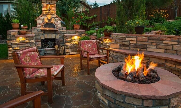 Наиболее часто для оборудования очага применяют кирпич, который может быть как обыкновенным, так и шлакоблочным или шамотным. Для того чтобы внутри кострища хорошо удерживалось тепло, желательно выкладывать его стены широким кирпичом большого размера.