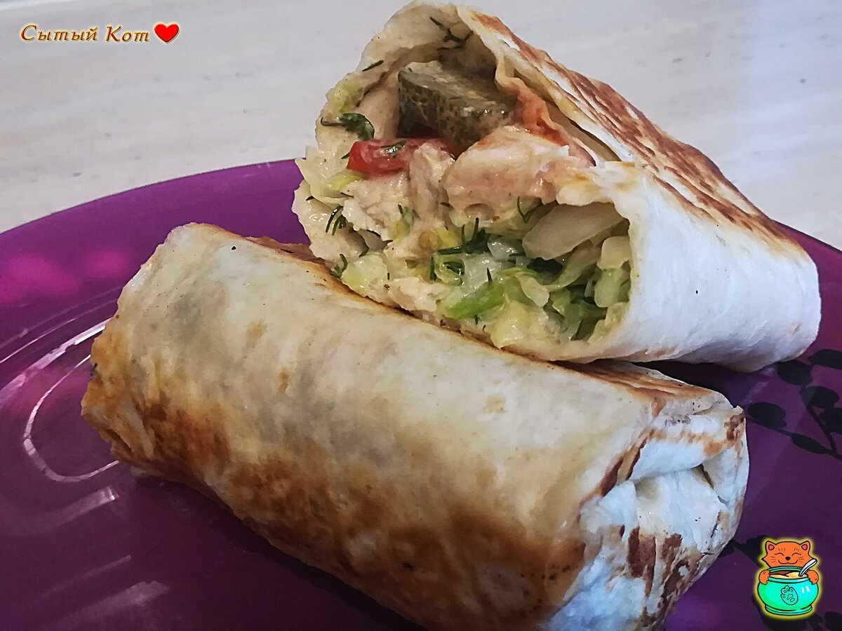 Рецептов шаурмы довольно много, предлагаю вариант, который очень любят в нашей семье. Примерное количество продуктов на 7-8 больших шаверм: Соус: Стакан - 200 мл. Вместо соуса можно использовать плавленный сыр, его нужно будет размазать по всему лавашу. Плюс вариант с плавленным сыром хорош, если берете шаурму в дорогу - она меньше размокнет. Мясо взять любое - по вкусу. Лучше всего запекать в рукаве для запекания, оно получится сочнее. ❤ Для соуса смешать кефир, сметану и майонез. Добавить выдавленный чеснок, измельченный укроп и специи. ❤ Капусту тонко нашинковать, посолить и пожамкать, чтобы она стала мягкой. Молодую раннюю капусту жать не обязательно. Также можно использовать пекинскую капусту. ❤ Добавить измельченный укроп, лимонный сок и уксус, заправить небольшим количеством растительного масла. ❤ Помидоры, огурцы и мясо нарезать небольшими кусочками. Листы лаваша разрезать пополам. ❤ На лаваш, ближе к одному широкому краю, выложить 2-3 ст. л. соуса, распределить. Выложить 3 ст
