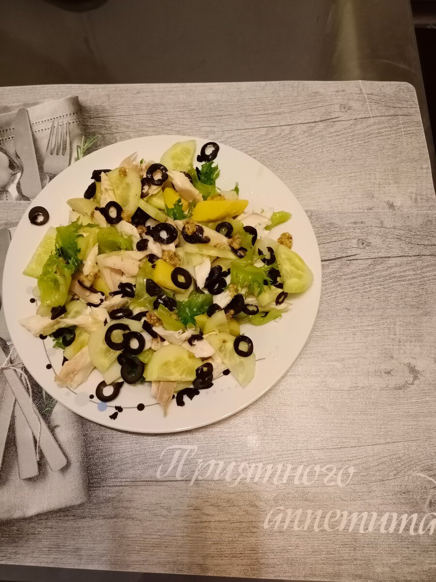 Приветствую всех, заглянувших на мою страничку на канале ДЗЕН. Хочу предложить вам легкий салатик, получившийся из рыбы, которую запекали вчера на ужин)). Отварила несколько картофелин и добавила хрустящих овощей. Вот и получился салат, который заправляется по вашему вкусу. Я предложу свой вариант заправки, а вы решите сами, что выбрать. Для этого салатика лучше: Рыбу брать отварную или запеченную. Картофель - отварной в мундире. Зеленый салат предпочтительнее хрустящий, так как он более плотный и не раскисает от заправки. Но если салат заправлять непосредственно перед подачей, то подойдет любой. Рыба отварная, запеченная – 200 гр Картофель отварной – 100 гр Огурец свежий – 100 гр Салат хрустящий – 100 гр Маслины – 50 гр Заправка: Масло оливковое, сок лимона, горчица (3:1:0.5) соль, перец Итак приступим. Разбираем рыбку на кусочки, попутно избавляясь от косточек. Картофель очищаем и нарезаем крупными ломтиками. Маслины нарезаем тонк