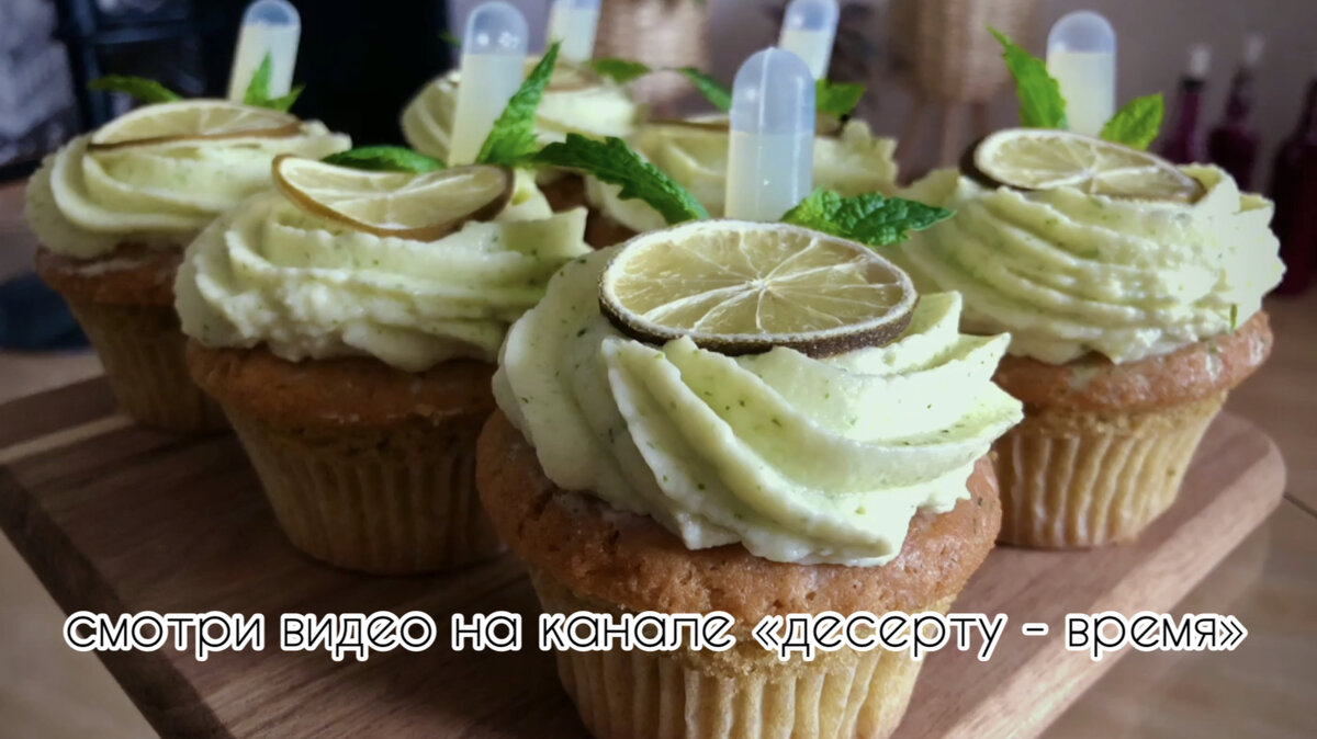 Освежающий летний коктейль 🍹😋☀️: лаймовые капкейки 🧁 с мятным сердцем 🌿💚