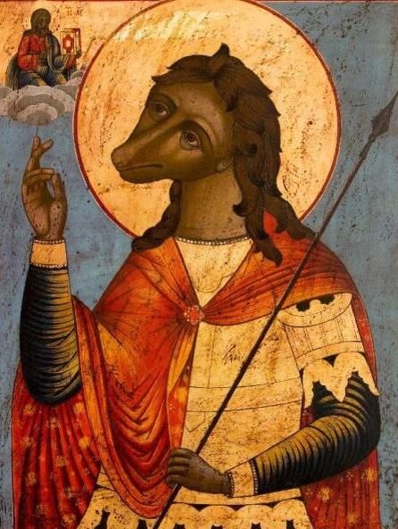 И вот я задумалась. Как же так? Разумеется, неграмотные крестьяне до двадцатого века могли разглядывать иконы или фрески в храме и узнать в них Евангельский сюжет. В этом случае образовательная функция иконы очевидна. Простым крестьянам, как детям, нужна была книжка с картинками, чтобы понять по ним, а не по тексту, звучащему на трудном церковнославянском языке, о чем идет речь в Священном Писании. Добавим сюда еще кучу всяких интересностей, например святого Христофора – красавца с лошадиной или собачьей головой,
