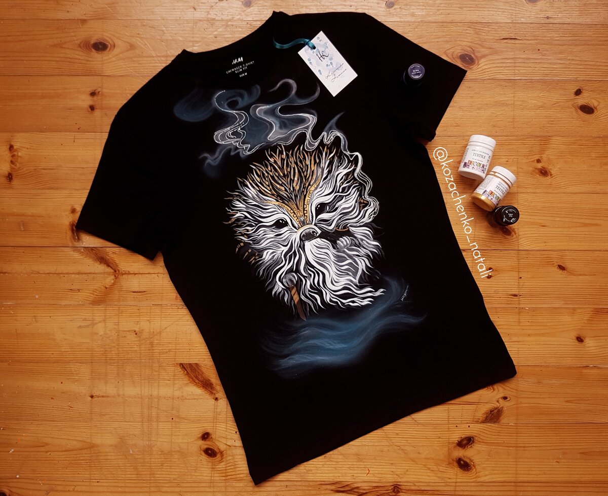 Перевод рисунка на черную футболку только кажется сложным, на самом деле он прост. В данном случае я использовала старый добрый метод с продавливанием обычным простым карандашом через распечатанное изображение на бумаге.
