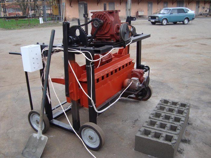 Чаще всего для изготовления шлакоблоков используют вибропресс «Команч- 34». Это оборудование может использоваться не только для изготовления шлакоблоков, но и для производства других стеновых камней и блоков путем вибропрессования. Производительность данной установки до 120 блоков за час. Одновременно производит 4 блока с размерами 390х190х190 мм. Вибропресс работает от 220 В. В списке преимуществ «Команча» простота обслуживания и ремонта, надежность, низкая стоимость (от 700 до 800 $ в зависимости от укомплектованности), очень быстрая и высокая окупаемость.