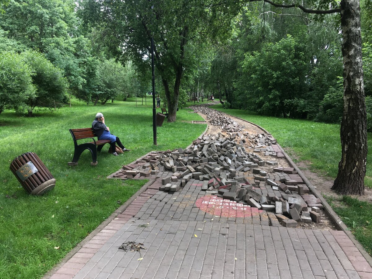 Каждое утро я начинаю с пробежки на свежем воздухе. Бегаю в соседнем парке вокруг пруда на местной речушке. Очень красивое место. Получаю заряд положительный эмоций и энергии на целый день. Однако не сегодня… Неожиданно наткнулся на груду кирпичей, перегородивших парковую дорожку. Ба-а-атюшки! Да это выкорчеванная плитка. Огляделся и обомлел. Всю дорожку на пару сотен метров словно взорвали. Куча свернутых плиточных камней змеей вьется через парк. Проходящая мимо бабулька выругалась так, что и я бы не смог. Моему возмущению не было предела. Зачем было затевать ремонт? Плитка была не новая, но в отличном состоянии. Это я точно знаю, так как каждый день бегаю по местным дорожкам. Сравните сами. Самое поразительное, что ремонт начался после отмены изоляции. Два месяца парк стоял пустой, перекрытый лентами и заборами. Делай в нем, что хочешь. Так нет. Затеяли строительные работы после отмены самоизоляции, когда в парке целый день полно народу. Намного больше, чем до карантина. Народ