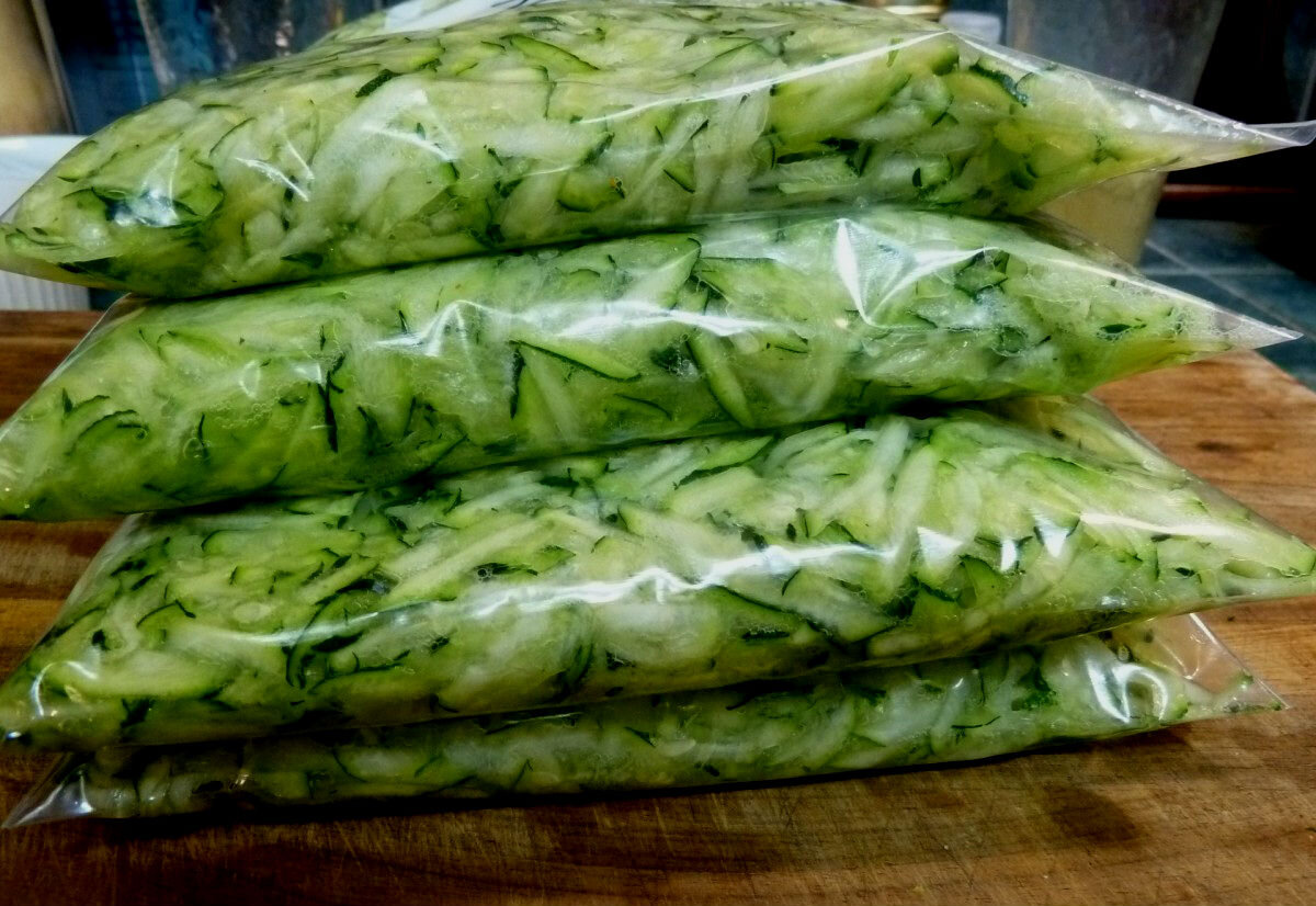 Кабачки в пакете на зиму. Натираю на терке и сразу по пакетам