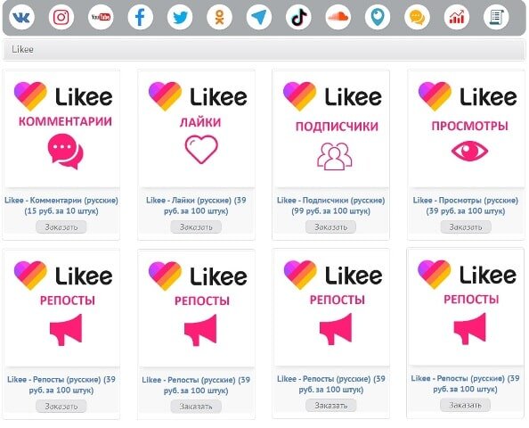 Мы уже знакомили вас с Likee, писали про то, как накручивать тут подписчиков. Теперь разберем смежный процесс - раскрутки в Лайке. Слишком больших отличий в этой соцсети нет. Неоднократно вы могли видеть статьи на тему кто круче. Сейчас все переходят на короткие видео, они стали появляться даже в Вконтакте. Но интересна эта соцсеть тем, что тут сидят в основном дети и сильно большой конкуренции не было до недавнего времени. Как раскручивать лайк Стремительно набирающая обороты она привлекает всё большее число людей, оно и понятно, здесь достаточно быстро можно стать популярным. Но для того, чтобы помочь вам с этим мы подготовили небольшой список сайтов и советы по заказу таких услуг. Описывать цены мы не будем, они представлены на фото, тут всё понятно. 39 рублей за 100 сердец не много, согласитесь. Услуга автоматическая. Спустя 10 минут после оплаты заказ начнет выполняться. Имеется суточное ограничение - 300 - 1000 лайков. Лайкать будут живые люди из России и СНГ. Всё прилично. You
