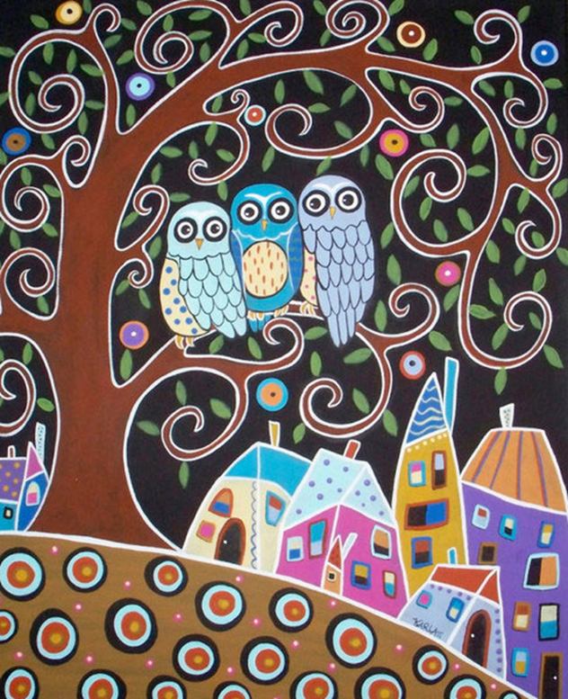 Американская художница Карла Жерар (Karla Gerard) пишет в основном по холсту. На ее картинах с детской наивностью и непосредственностью изображены городские и деревенские пейзажи, цветущие деревья и птицы, люди и животные. Все выглядит очень ярко и позитивно. Картины Карлы Жерар полны оптимизма и жизни. На фотографиях представлена лишь малая их часть. Рукодельницы всего мира, в том числе и в России, готовят свои поделки (сумочки, подушечки и т. д.) вдохновляясь и используя эмоциональные картины Карлы. На первый взгляд её картины кажутся немного наивными и детскими. Но при более детальном изучении её работ появляется ощущение, что попадаешь в сказку: фантастические цвета, изогнутые деревья с фантазийными листьями и большими красочными цветами, аккуратные домики и таинственные птицы, бескрайние холмы, абстрактные пейзажи, наполненные множеством маленьких деталей, которые хочется рассматривать бесконечно. Карла Жерар родилась в 1960 году в Техасе, США. Сейчас живёт в штате Мэйн. С де