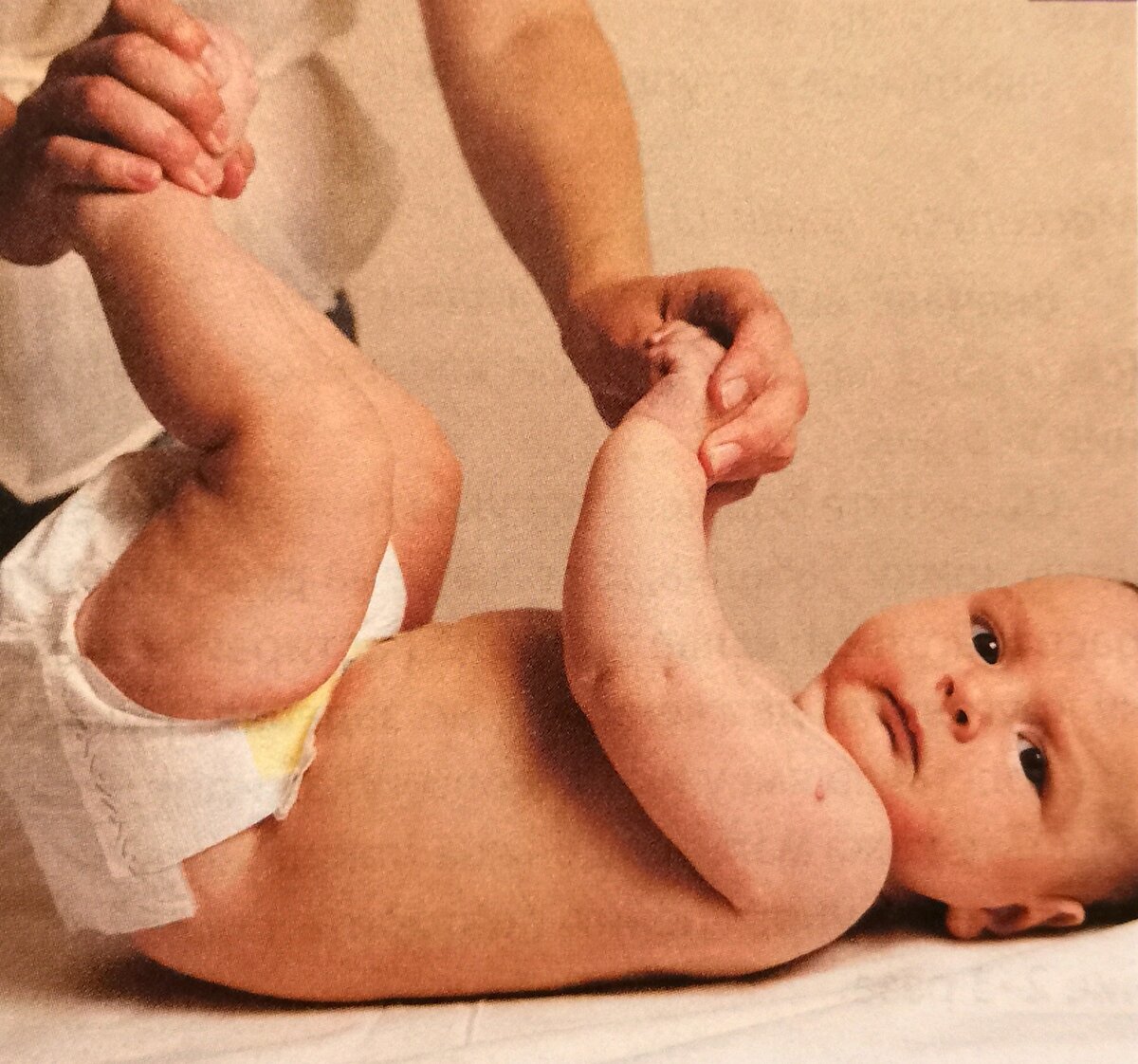 Итак. В первые месяцы ваша задача уравновесить тонус мышц-сгибателей и разгибателей, расслабить тонус сгибателей. Для этого вы будете опираться на врожденные рефлексы, а основным приемом будет поглаживание.