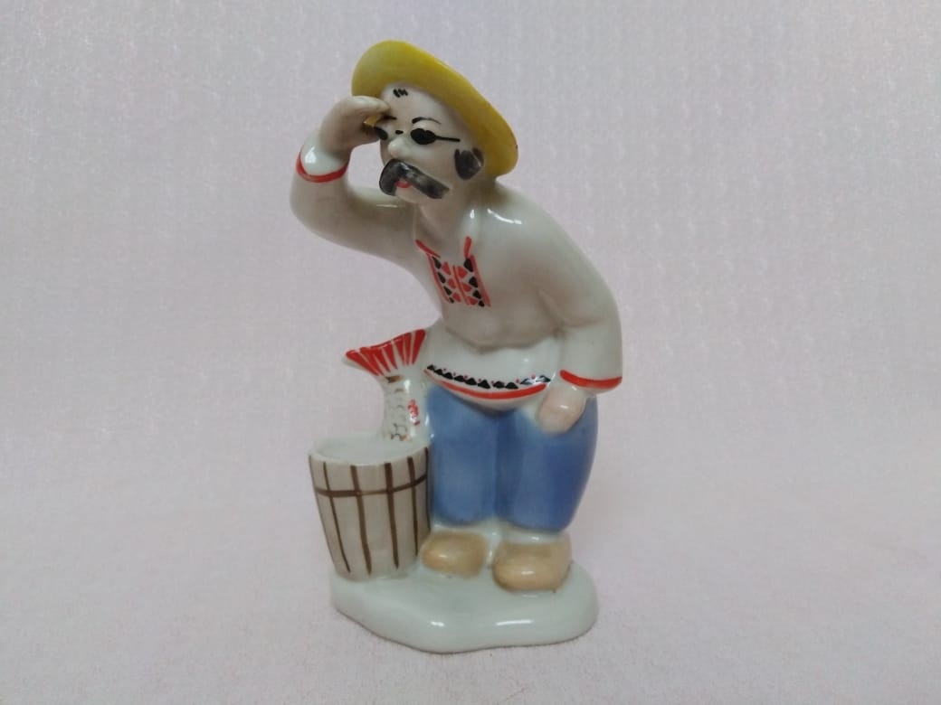 В интернете как только ни называют эту статуэтку - и «Дед Щукарь», и «Слепой рыбак», и «Летняя рыбалка». Как правильно, непонятно. Но есть еще одна статуэтка, в компанию к этой, «Зимняя рыбалка».