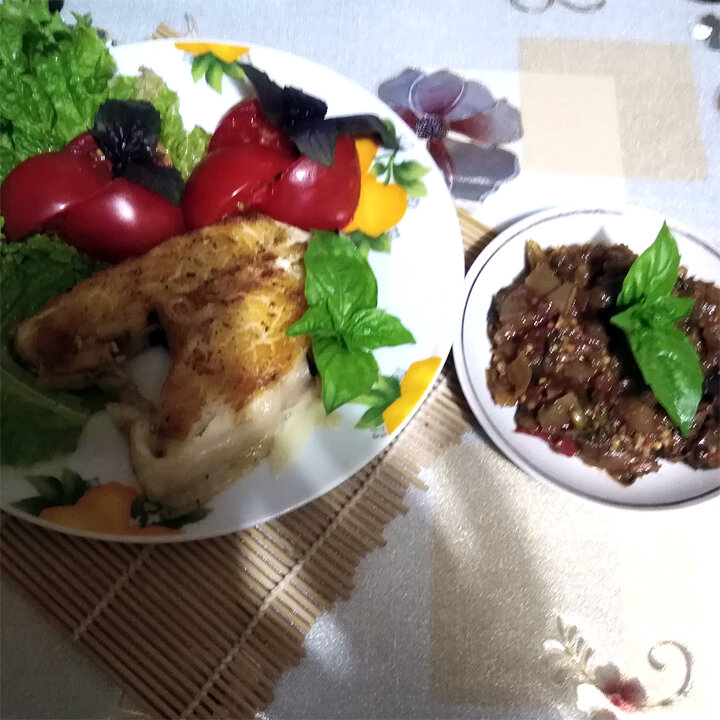 Размороженные стейки зубатки полчаса мариновались с лимонным соком, приправой для рыбы и солью. Затем рыба была завёрнута в фольгу, и отправлена в духовку на 50 минут при 200 градусах. А в качестве гарнира к рыбе было соте из овощей и зелени - баклажана, перца, лука, помидора, кинзы и петрушки. Больше общения и рецептов - в группе "Рецепты для диабетиков" в Facebook, или в группе ВКонтакте! Рецепт на странице в Facebook Автор рецепта - Нина Джелялова