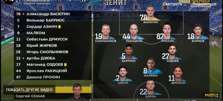 После гола Семак провел двойную замену: вместо Оздоева и Жиркова на поле вышли Мусаев и Шамкин.