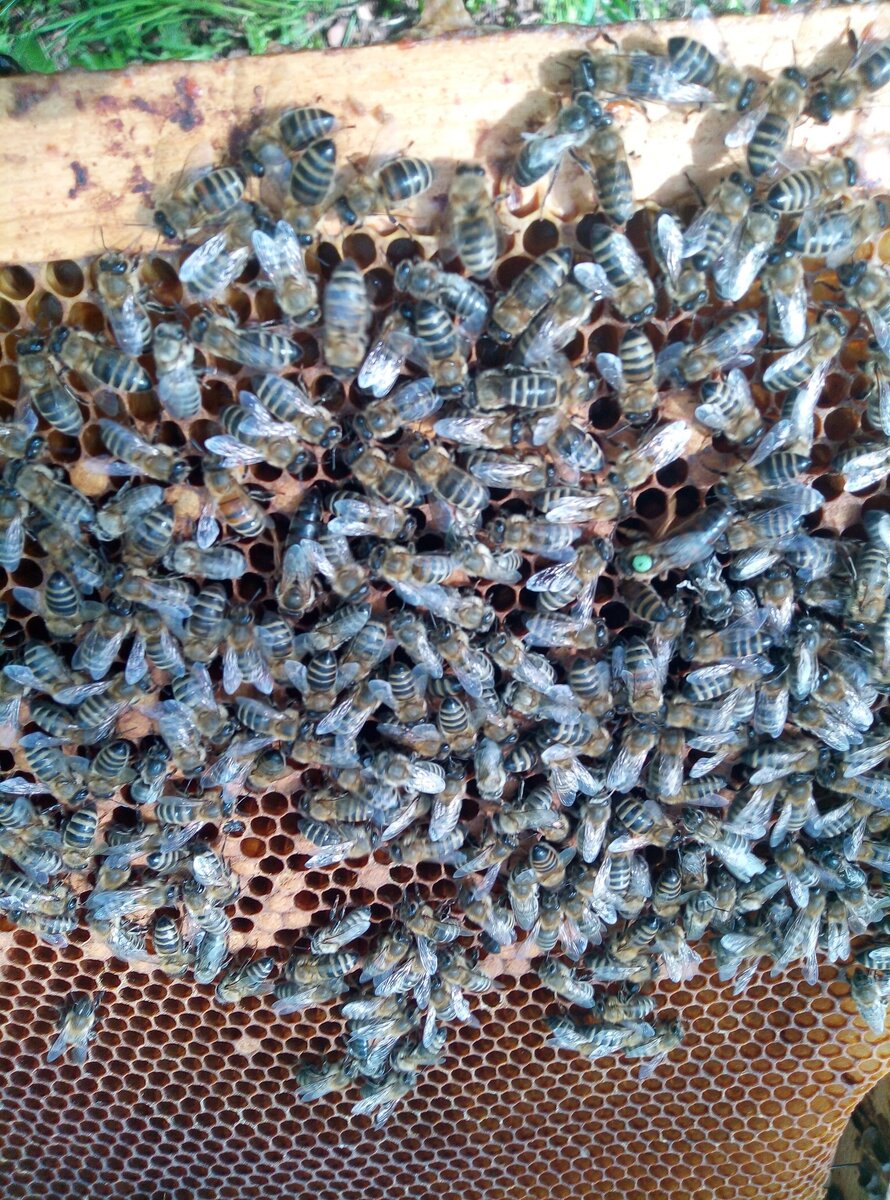 Эта весна выдалась в моем регионе суровой. Рано потеплело, но вернувшиеся холода и непогода продержались до середины мая. Долго не было свежей пыльцы и нектара для развития расплода. И некоторые из семей сильно ослабли, до двух рамок пчелы. Потому, в очередной приезд решил объединить наиболее слабые, дабы совсем не пропали. Из 5 семей собрал две.