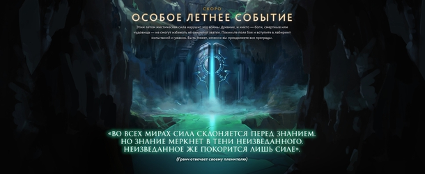 ГОЛОС АГАНИМА!!!!!!!!!!! С чего все началось . В ночь 13-14 июля В Dota 2 добавлен новый тизер летнего ивента. До выхода данного патча о ивенте можно было узнать что в ходе события «мистическая сила нарушит ход войны Древних». Теперь же пользователи могут прочитать другое таинственное послание: «Во всех мирах сила склоняется перед знанием. Но знание меркнет в тени неизведанного. Неизведанное же покорится лишь силе». причем есть подпись (Гранч отвечает своему пленители) Что бы это могло значить мы узнаем совсем скора . В то же время Dota 2 добавили новую иконку для Aghanim's Scepter. Теперь в лавке сам артефакт выглядит несколько иначе, а поглощаемый Aghanim's Blessing тоже был изменен . Два их анонса связаны между собой, ну на сто процентов ведь зачем менять иконку Aghanim's Scepter просто так ,да еше и в момент изменения ивента . А что происходит с Aghanim's Scepter он расколот и из него скорее всего что то хочет выбраться неужели именно в нем был заточен сам АГАНИМ !! В