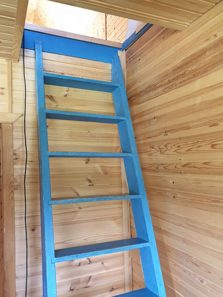Доброго дня уважаемые читатели моего канала! Вроде ничего сложного – два этажа в доме и нужно выбрать лестницу, но на самом деле куда все серьезнее. У меня дачный дом. Лестница на фото. Если вы захотите купить лестницу и приставить ее ко второму этажу, то это очень плохая идея. Я пожинаю плоды предыдущего хозяина дома. Лестница имеет такой крутой угол, что забираться на второй этаж могут только мужчины в семья. Я и мой сын. Жена боится, а теща с больными ногами не поднимется. Что я могу посоветовать. Нельзя покупать лестницу и ставить ее под крутым углом. На моей лестнице еще не за что держаться. Каждый раз спускаешься как в последний раз. Решением проблемы должна стать покупка двух лестниц. Придется пожертвовать пространством, зато угол подъема станет меньше. Можно сделать угловой подъем, а можно и по спирали. Также выбирайте лестницу