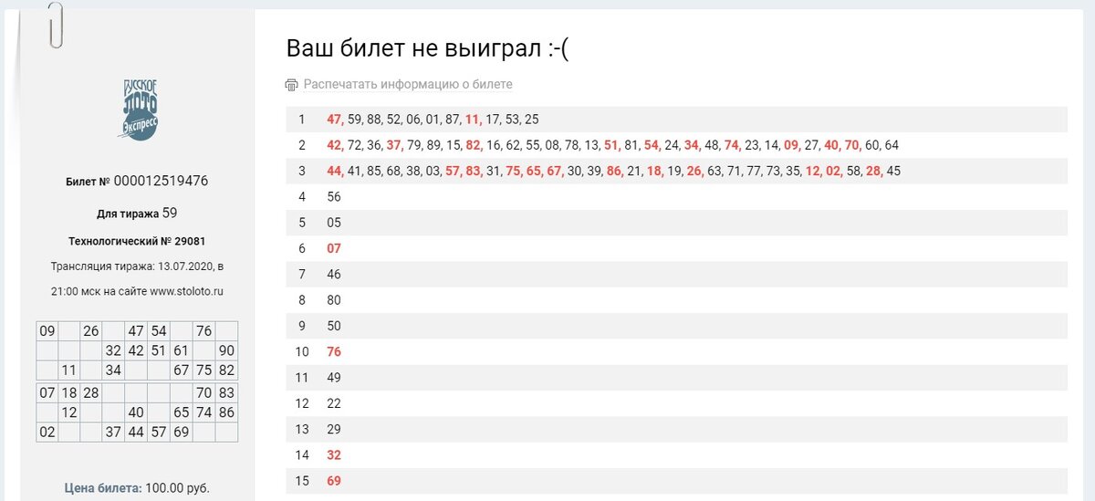 Играл вчера в в лотерею, на билет, который получил от сайта столото бесплатно. Правда в итоге ничего и не выиграл. Не знаю как часто дают такие билеты остальным игрокам, но я свой билет получил в поддержке сайта. Просто обратился за разъяснениями по поводу проведения 56 тиража. Пару раз ответил робот, потом человек отправил читать пресс-релиз, в котором тоже ничего не объяснялось, а затем там же дали ссылку, по которой регистрируешься и тебе в течении 36 часов приходит промокод. Обязательно нужно купить два билета любой лотереи, и по промокоду будет третий бесплатный билет. Билетов в тот день покупал много, дали по промокоду почему-то «Русское лото экспресс». Сегодня играю в быструю лотерею «Рапидо 2.0». Всем удачи!