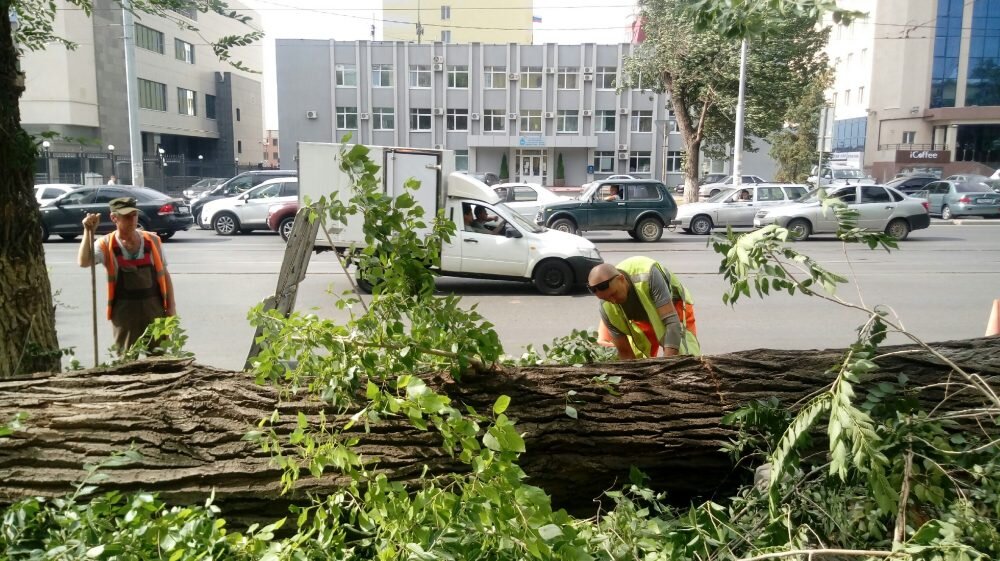 Непогода повалила деревья на улицах, во дворах домов и скверах. В Самаре организована работа по спилу и вывозу аварийных деревьев. Этого потребовала погода. Гроза, прошедшая в ночь на 14 июня, повредила многие зеленые насаждения. Всего в городе пострадало 35 деревьев. Они находились во дворах домов, на улицах, в скверах и вдоль дорог. Первый заместитель главы Самары Владимир Василенко поручил коммунальщикам полностью ликвидировать последствия непогоды. На территориях, где упавшие деревья препятствовали движению транспорта или пешеходов, порядок был наведен в тот же день. Бригады муниципального предприятия «Благоустройство» освободили проезжие части дорог еще до полуночи. Там, где ветви и сучья не особо мешают, все лишнее вывезут в ближайшее время. Сломанные растения предстоит разрубить и транспортировать на полигоны. Начальник по содержанию зеленых насаждений специализированного дорожного участка МП «Благоустройство» Любовь Рыбакина рассказала, что рядом с проезжей частью из-за силь
