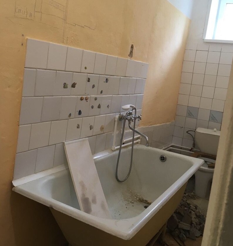 Некоторое время мы без проблем мылись в ней. Да, неприятно, конечно, что туалет вот так вот почти перед лицом находится, когда моешься в ванне. Нет шкафчиков, да даже зеркала нет, ведь места под всё не хватает.