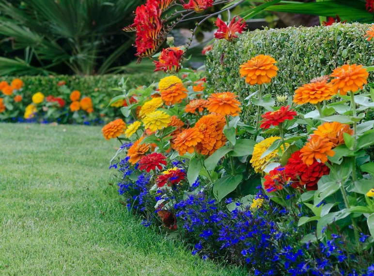 Для схемы №2 подойдут цветы в красном цвете – Целозия, Космея, Бархатцы, Наструция.