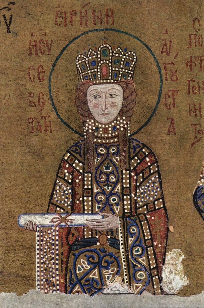 В прошлой статье о княгине Ольге было отмечено, что она и первая женщина на русском престоле, и первая русская святая, и умелый политик и т. д. и т. п. И вообще о том, что наверняка ей было нелегко править страной в сугубо мужском средневековье. А давайте взглянем, а насколько оно было вообще мужским. Что творилось в этом плане за пределами набирающей силы Руси. Как женщины правители первыми на ум приходят, конечно, Клеопатра, Екатерина Великая, Маргарет Тэтчер. Но это все другие времена и другие нравы. Другие политические реалии. А были ли женщины-правительницы в сопоставимый с правлением княгини Ольги исторический период? А были! Ирина — византийская императрица в 797—802 годах. Стала первой женщиной в истории Византии, правившей самостоятельно. В 768 году стала женой императора Льва IV Хазара, а после его смерти в 780 году начала править как регент при своём малолетнем сыне Константине VI. Есть мнение, что к смерти мужа она имела самое прямое отношение. Со временем сын повзросле