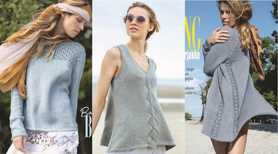 Подборка интересных на мой взгляд летних моделей джемпера, кардиганов и топов со схемами узоров. Связаны они комбинированием лицевой глади и ажурных узоров