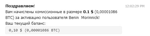 Тянем рефов. 0.1$ за каждого + 10 уровней. После того как насобираем баланс 10$ можно будет вывести. Бот платит ниже пруф выплаты