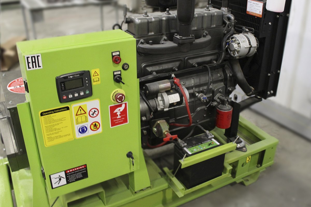 Стационарный дизель-генератор по типу работы схож с передвижными электростанциями, так же имеет основные рабочие узлы в виде двигателя и генератора. Но разница заключается в том, что на подобных электростанциях устанавливаются более мощные четырёхтактные моторы, что напрямую сказывается и на размерах агрегатов. Подобные установки чаще всего весят более тысячи килограмм, поэтому не подходят для частого перемещения. Основанием для стационарного дизельного генератора выступает платформа с виброопорами, которые обеспечивают повышенную устойчивость всей электростанции, позволяют устанавливать ее на любой подходящей площадке. Дополнительно стационарные генераторы могут быть укомплектованы погодозащитным кожухом, что позволит значительно уменьшить уровень шума, защитить оборудование от атмосферных осадков и прочих негативных внешних факторов. Достоинства использования стационарного генератора для дома: Стационарный режим генератора характеризуется длительной и безотказной работой, повышенной