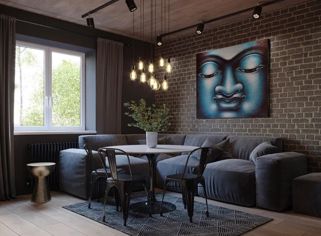 2. Фактура. Создается на этапе ремонта, оформляется кирпичом, деревом, декоративной штукатуркой, мягкими блоками. Не забудьте про освещение: подсветка сверху или снизу выгодно подчеркнет текстуру.