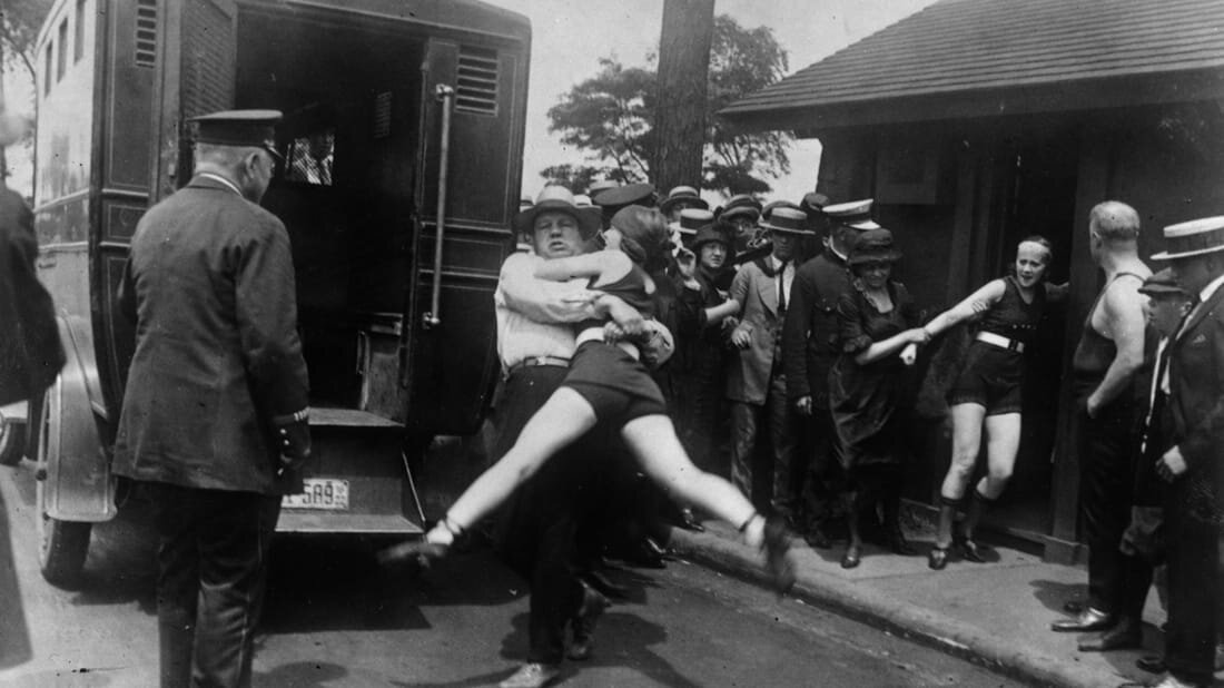 1. Получить кредитную карточку Были времена, когда женщинам запрещали оформлять кредитные карточки. И времена эти были не так давно, в 70-х. Если женщина была одинока или в разводе, то банки часто требовали, чтобы она приводила с собой мужчину, который бы поставил подпись и подтвердил ее заявление. И, если банки и давал кредит, то в два раза меньше, чем мужчинам. 2. Быть присяжной в суде Женщинам запрещали участвовать в суде присяжных из-за "дефекта пола". Женщины, якобы, не были способны объективно оценить ситуацию и осудить преступника. 3. Носить удобные купальники. В 20-е годы на публичных пляжах не стоило сильно обнажаться. Существовали даже пляжные патрули, которые запрещали демонстрировать обнаженные ноги. Все, кто надевал костюм, отличающийся от мешка для картошки, должны были переодеваться. 4. Работать во время беременности До 1964 года в США беременность часто означала, что женщину могли навсегда уволить. У работодателя не было никаких обязательств сохранять ее рабочее мес
