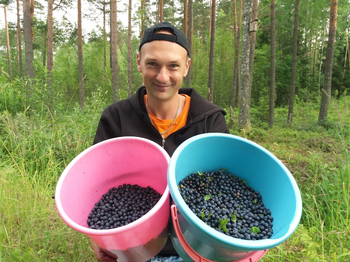 Набрали мы черники в лесу целых 7 литров, а что с ней делать, не знаем. Заготовки делать пока неохота - съездим ещё и вот тогда закатаем на зиму. А сейчас надо свежую есть!