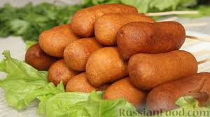 Вкусные Американские корн доги в домаших условиях . Это популярный американский фастфуд, который с легкостью можно приготовить в домашних условиях. Быстро и просто! Что нам понадобится из продуктов: Первое что вам нужно сделать - это подготовить продукты. Для рецепта берём свои любимые и вкусные сосиски. Если дома не нашли кукурузную муку, ее можно заменить пшеничной и сделать кляр из пшеничной муки, будет тоже очень вкусно. Следующее -это смешиваем сухие ингредиенты в емкости с высокими стенками, чтобы в дальнейшем было легко окунать сосиски.После добавляем яйцо, перемешиваем, вливаем молоко до получения очень густого теста. Дальше нам предстоит - это сосиски обваливаем в муке. Прокалываем каждую сосиску шпажкой и окунаем в тесто полностью, чтобы верхняя часть шпажки тоже покрылась тестом. И последний шаг - это разогреваем фритюр до 150-170 градусов, обжариваем наши не до корн доги , вращая шпажки, чтобы корн-доги равномерно зарумянились. И вот наши корн доги готовы.Всем прият