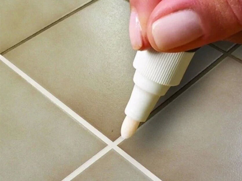 Интересный маркер, способный закрасить недостатки затирки межплиточных швов с помощью оригинального густого наполнителя, похожего на замазку или канцелярский корректор.