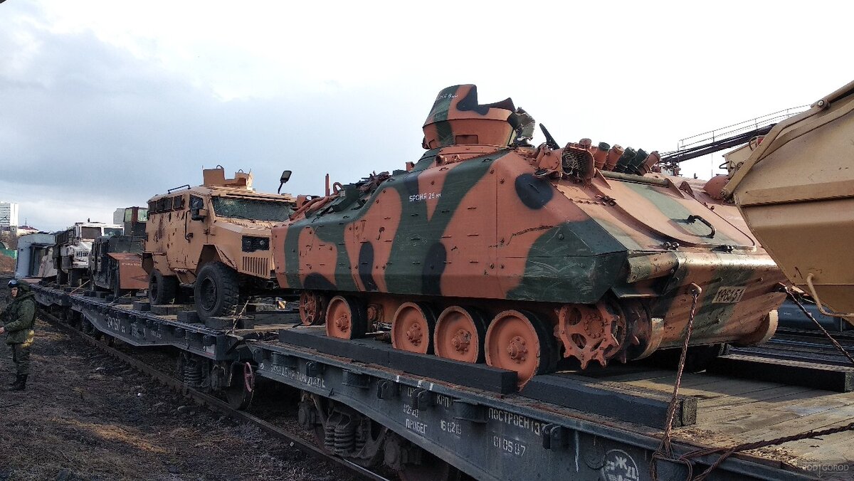 Покрытые снегом мурманские сопки, солдат российской армии и техника с сирийских полей.