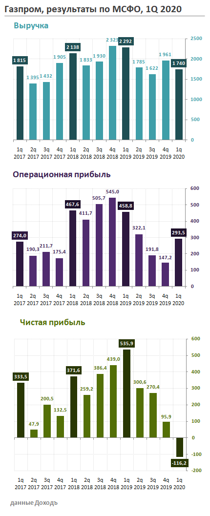 Менеджмент компании напомнил, что утвержденная в конце 2019 года дивидендная политика Газпрома при расчете дивидендов использует корректировки на «неденежные» статьи. С учетом этих корректировок Газпром по итогам 1 квартала получил прибыль в размере 288 млрд рублей.