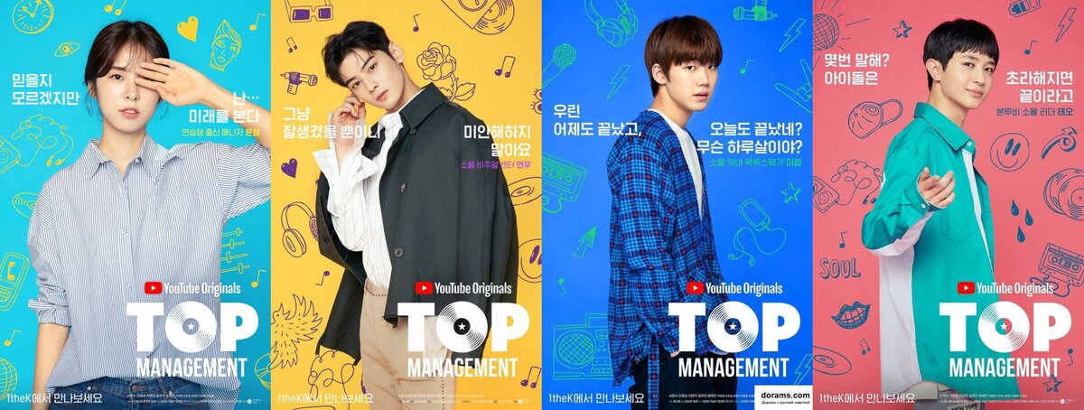 Топ менеджмент - это дорама об артистах группы S.O.U.L. (созданной специально для первого корейского телесериала на YouTube Original's) и о бывшей трейни (в мире сериала), ставшей их менеджером. Девушка умеет предсказывать будущее. Смотрите сериал, чтобы узнать, как сложится карьера айдолов и нужно ли знать будущее?