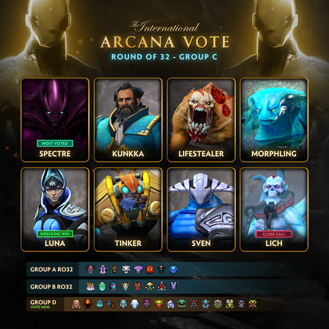 Самую "сокрушительную" победу над своим оппонентом в группе C одержала Luna, а больше всего голосов получила Spectre. Lich победил с минимальным отрывом в группе.