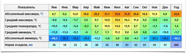 Считается, что в данной местности преобладает умеренно-континентальный климат. Зима тут относительно мягкая, но длинная, а лето – короткое и прохладное. Но за счет повышенной влажности жара переносится сложно. В общей сложности за год тут может выпасть 500-650 мм осадков.