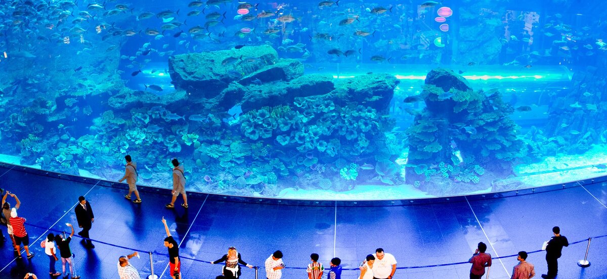 Данный мировой рекорд занимает огромный и крытый аквариум, в котором живут тысячи различных видов рыб. Построен этот гигантский резервуар с водой в Дубай Молл - самом огромном торговом центре в мире! Находится на первом этаже гигантского ТЦ и сделан из довольно прочного стекла. Особенности большого аквариума Эта достопримечательность входит в список книги рекордов Гиннесса, что собственно и не удивительно. В аквариуме проживают больше 30 тысяч существ, в число которых входят скаты и акулы. Размер стеклянной панели в ширину около 33 м, а в высоту около 8 м. В аквариуме проложен стеклянный туннель протяжённостью 48 м. Стеклянный туннель даёт хороший обзор на 270 градусов. Предоставляемые развлечения В океанариуме Дубай Молла найдутся развлечения для любого возраста. Здесь есть и прогулка в лодке, у которой стеклянное дно для лучшего обзора, и даже погружение в клетку с опасными хищниками - акулами. Присутствует здесь также разного рода дайвинг, новичков в этой сфере могут подготовить,
