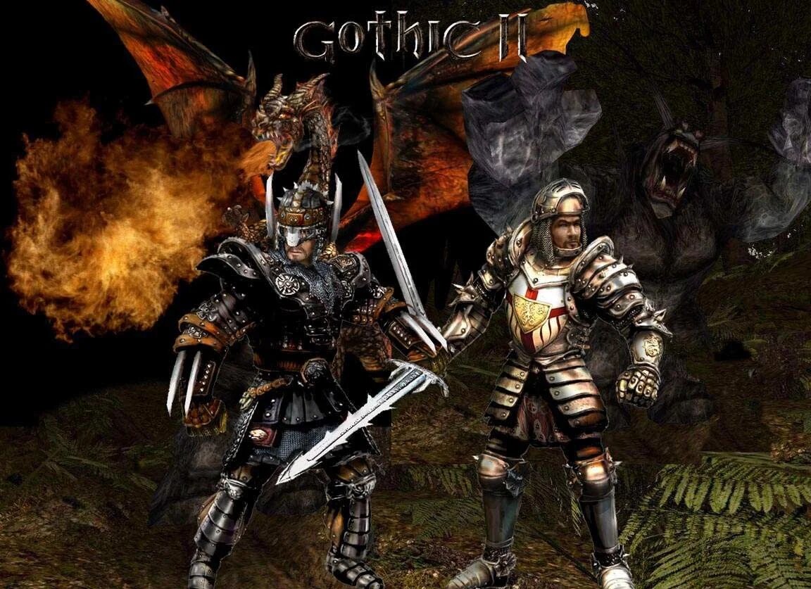 Gothic II является прямым продолжением первой, настолько прямым, что разница между концовкой первой, и началом второй, всего каких-то 13 дней. Основной сюжет теперь состоит вот в чем: после убийства наш герой не успевает выбраться из храма, но благодаря силе своих доспехов выживает, и знакомый нам по первой части маг Ксардас, все-таки успевает нас оттуда вызволить. Он же нам говорит, что мы убили, но перед смертью, он таки успел издать последний крик, тем самым призвав новое зло, ведомое аж самими драконами. Также Ксардас рассказывает о «Глазе Инноса» – могущественном артефакте, который нам нужно в срочном порядке заполучить, ибо без него шансы