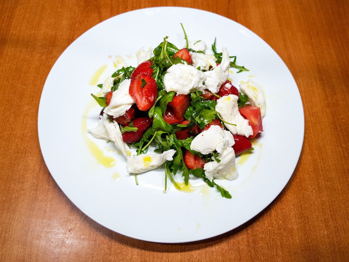 Всем привет, одна явная проблема нашей страны это нехватка сладких помидоров))) Я думаю каждому приходилось чувствовать кислотность этого продукта, я например очень частно сталкивался готовя супы, соуса и пасту с помидором с некой кислинкой, где то она выигрывала, а где то портя блюдо. Самый простой способ это добавить в помидоры сахар, но это далеко не лучшее решение и приходилось порой есть так))). Тут я был недавно на рынке и купил овощи на салат выбрав самые вкусные на мой взгляд краснодарские помидоры, одурманившие своим запахом и красно-розовым цветом, придя домой начиная нарезку с помидор попробовав его опять столкнулся с этой проблемой, он кислый! Что же делать? Поделитесь своим способом) Не зря у меня в холодильнике лежала сладчайшая клубника, в голове созрела идея, буду сластить ей!! Но я не мог себе представить клубнику, помидор, огурец и редис(все что было для салата) и после раздумий и разговоров с самим с собой я принял изменить классический летний салат, который я хотел