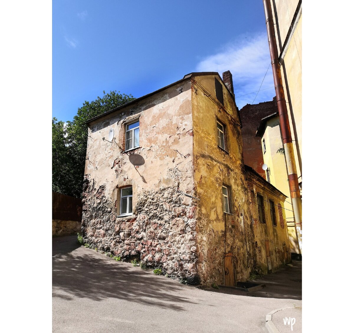Самый старый жилой дом располагается по адресу: г. Выборг, ул. Крепостная, д.13А. Найти его бывает сложно, так как он запрятан в одном из дворов старого города. Поэтому вот маршрут от центральной площади Выборга до Дома гражданина: