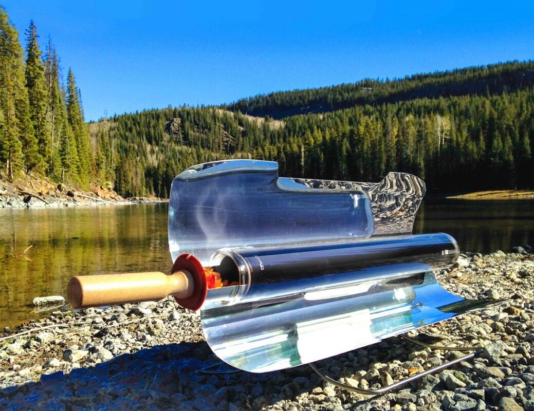 Благодаря подобному устройству в солнечную погоду можно приготовить пищу, запечь любые блюда. Состоит из отражателя и колбы, куда помещается лоток с продуктами. Продаются китайскими производителями на alibaba и aliexpress. Стоимость: 50-95$.