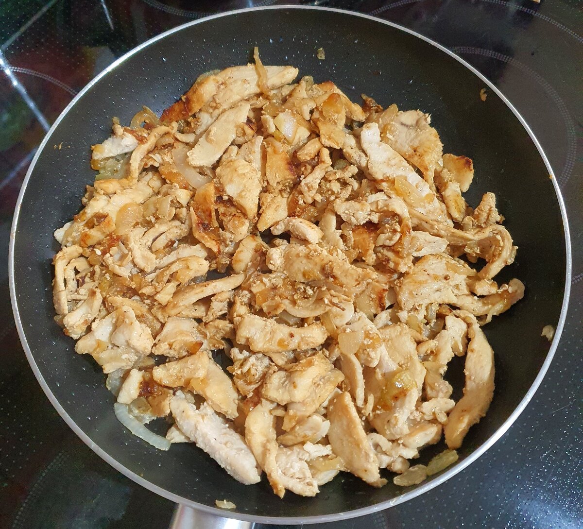 Для этого блюда всего потребуется по минимуму. Минимум ингредиентов, времени и энергозатрат. Любителям жаренного лука советую обязательно попробовать. Ингредиенты: - куриное филе 500 грамм - лук репчатый 200 грамм - масло растительное 4 столовые ложки - соль и черный молотый перец по вкусу Куриное филе нарезаем на тонкие пластинки. Лук нарезаем тонкими полукольцами. Сковороду хорошо разогреваем с растительным маслом. Обжариваем лук на растительном масле постоянно помешивая до чуть золотистого цвета. Добавляем к луку куриное филе и жарим на сильном огне, постоянно помешивая, до золотистого цвета. За 5 минут до готовности добавляем соль и специи. Приятного аппетита! Жду ваших комментариев, буду рада лайкам и подпискам!