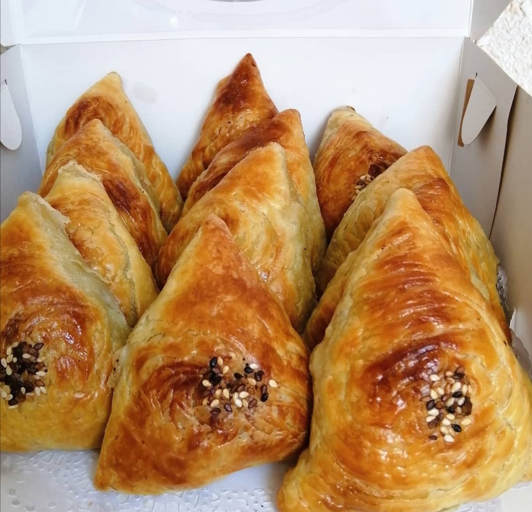 2. Лаваш порезать на полоски и выложить начинку на край полоски и свернуть уголком 3-4 раза, чтобы вся начинка оказалась скрыта, отрезать лишнее. Таким образом свернуть остальные пирожки.