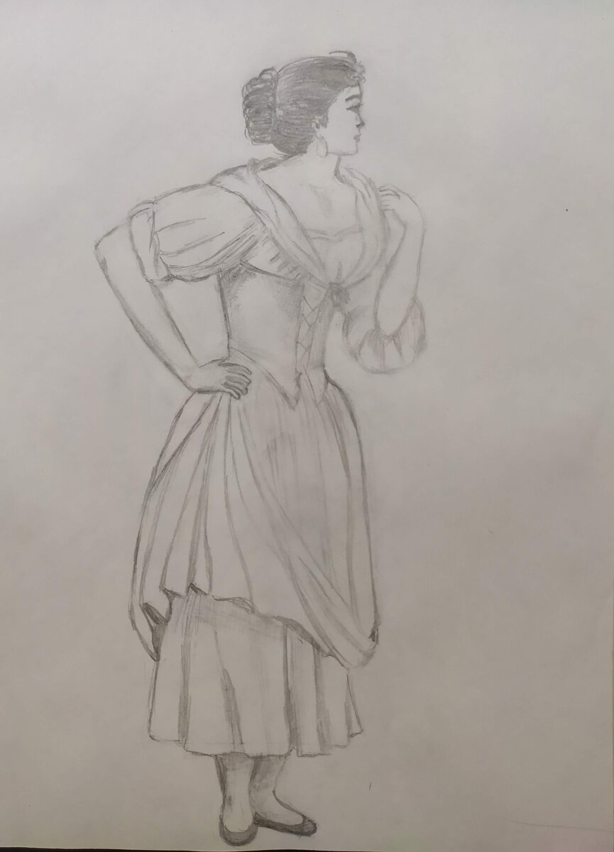 Хочется не просто порисовать, а именно изобразить человека, но натуры рядом больше нет. Вы скажете, что можно нарисовать себя, глядя в зеркало. Но в этом процессе будут те же сложности, что я описала выше. Возможно позже я обязательно попробую. А сейчас задачу себе поставила нарисовать, так как получится , что бы в дальнейшем было с чем сравнивать. Поэтому рисовала без всяких умных книг, статей и видео.